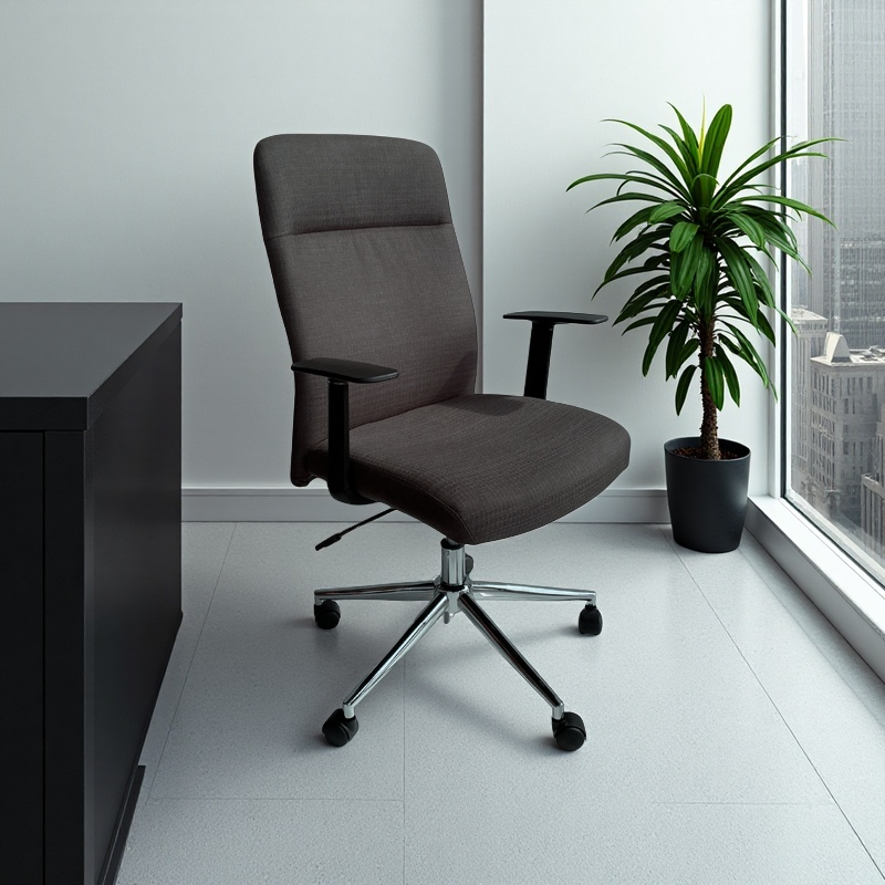 La Silla Ejecutiva Verona combina a la perfección un diseño sofisticado con la ergonomía que tu cuerpo necesita para largas jornadas frente al escritorio. Su respaldo alto brinda un excelente soporte para la espalda y cuello, mientras que su base metálica cromada aporta estabilidad, resistencia y un acabado moderno que eleva el estilo de cualquier oficina.
